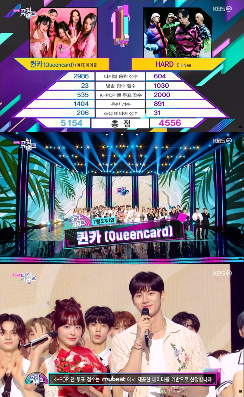 14ÀÏ ¿ÀÈÄ ¹æ¼ÛµÈ KBS2 '¹ÂÁ÷¹ðÅ©'¿¡¼´Â »þÀÌ´Ï 'HARD'¿Í (¿©ÀÚ)¾ÆÀ̵éÀÇ 'ÄýÄ« (Queencard)'°¡ 1À§ Èĺ¸¿¡ ¿Ã¶ú´Ù.