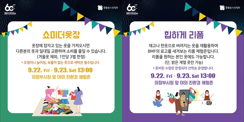 ¶ÇÇÑ À̹ø Çà»ç¿¡¼´Â ģȯ°æ ½ÇõÀÇ ÀÏȯÀ¸·Î ¾È ÀÔ´Â ¿ÊÀå ¼ÓÀÇ ¿ÊÀ» °¡Á®¿Í ¼·Î ±³È¯ÇØÀÔ´Â ¡®¼î¹Ì´õ¿ÊÀ塯°ú Ƽ¼ÅÃ÷¿¡ BMF·Î°í¸¦ »õ°Üº¸´Â ¸®ÆûÁ¸À¸·Î ¿Ê¾²·¹±â¸¦ Àû±ØÀûÀ¸·Î ÁÙ¿©°¡ÀÚ´Â ¿¡ÄÚüÇèÁ¸À» ºñ·Ô ÆäÀ̽ºÆäÀÎÆÃ, Ç쳪, Çì¾îÇǽº·Î °ø¿¬À» Áñ±â±â À§ÇÑ Èü½ºÅÍÇà»ç µî ´Ùä·Î¿î Çà»ç°¡ ÁغñµÇ¾î ÀÖ´Ù. Çà»ç´Â ¹«·áÀ̸ç ÀÇÁ¤ºÎ¹®ÈÀç´Ü ȨÆäÀÌÁö¿Í ÀνºÅ¸°èÁ¤(@bmf_uac)À» ÅëÇØ ÀÚ¼¼ÇÑ ³»¿ëÀº È®ÀÎÇÒ ¼ö ÀÖ´Ù.