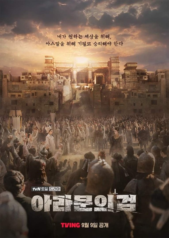 '¾Æ¶ó¹®ÀÇ °Ë'Àº ŰíÀÇ ¶¥ ¾Æ½º¿¡¼ ¼·Î ´Ù¸¥ Àü¼³À» ½á°¡´Â Ÿ°ï, Àº¼¶, ź¾ß, žËÇÏÀÇ ¿î¸íÀûÀÎ À̾߱â. ½ÃÁð1À» ÀÕ´Â Àα⸦ À̾ ¼ö ÀÖÀ»Áö ÁÖ¸ñµÈ´Ù.