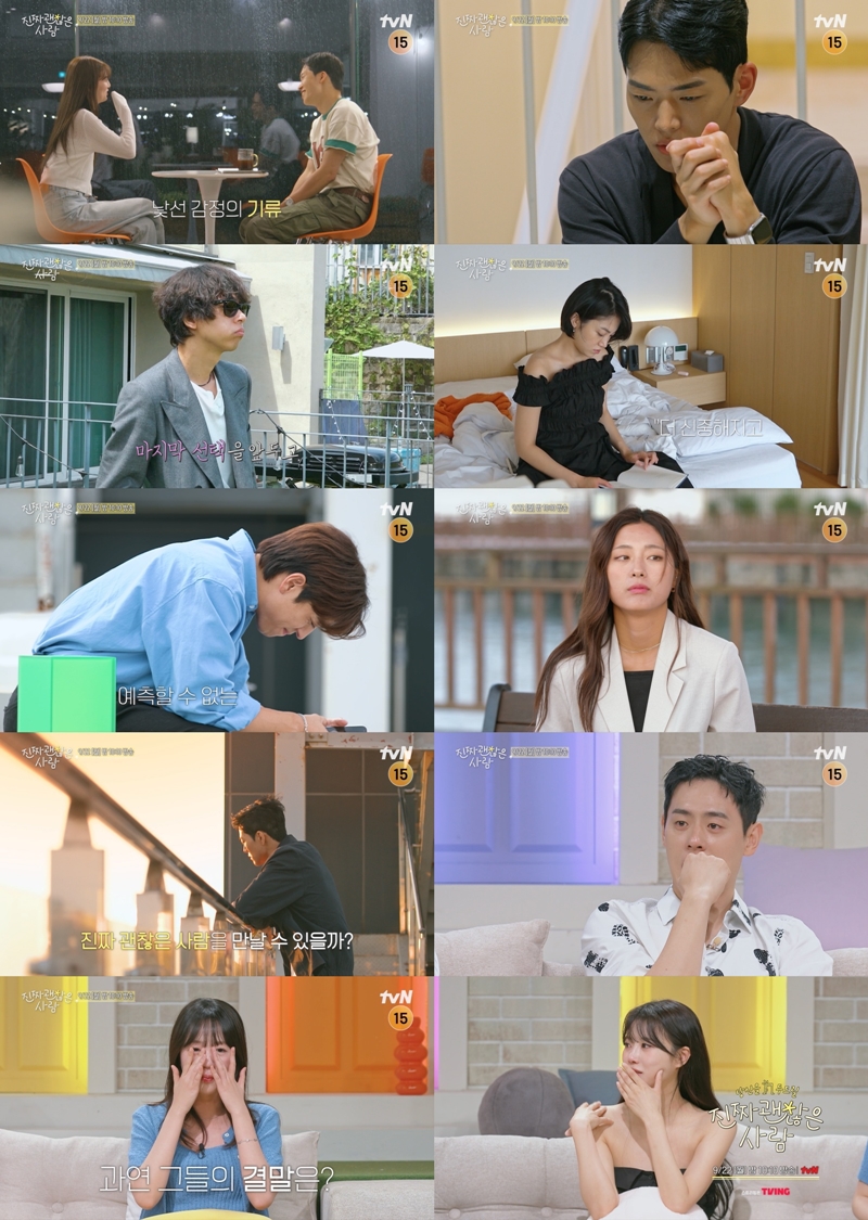22ÀÏ ¿ÀÈÄ ¹æ¼ÛµÇ´Â tvN ¡®ÁøÂ¥ ±¦ÂúÀº »ç¶÷¡¯¿¡¼´Â ·¯¹þÇϿ콺 ¿©Á¤¿¡ ¸¶Ä§Ç¥¸¦ ÂïÀ» ÃÖÁ¾ ¼±Åà °á°ú°¡ °ø°³µÈ´Ù. ÄÑÄÑÀÌ ½×ÀÎ °¨Á¤°ú ¼»ç ¼Ó ¼±ÅÃÀÇ ±â·Î¿¡ ¼± Ä£±¸µéÀÌ °ú¿¬ ¾î¶² ¼±ÅÃÀ» ³»¸±Áö ÃʹÌÀÇ °ü½ÉÀÌ ÁýÁߵȴÙ.