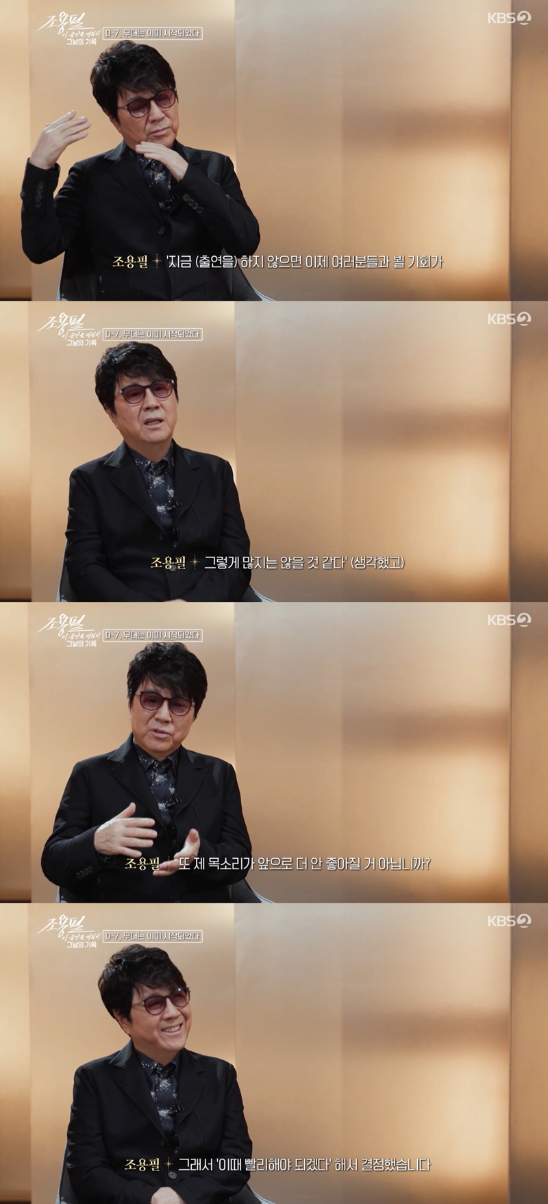 8ÀÏ ¿ÀÈÄ ¹æ¼ÛµÈ KBS2 ƯÁý ´ÙÅ¥ ¡®Á¶¿ëÇÊ, ÀÌ ¼ø°£À» ¿µ¿øÈ÷ - ±×³¯ÀÇ ±â·Ï¡¯¿¡¼´Â Á¶¿ëÇÊÀÇ ´Üµ¶ ÄܼƮ ºñÇÏÀε尡 ±×·ÁÁ³´Ù.
