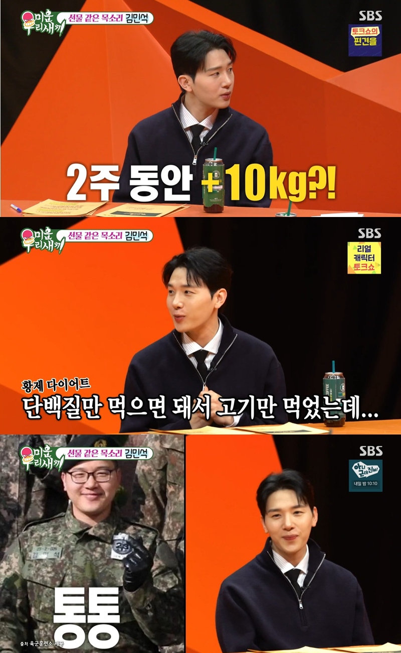 ÀÌ¿¡ ¼ÀåÈÆÀº "Ȱµ¿ÇÏ´Ù°¡ ±º´ë °¡¼ ¸öÀÌ Àú·¸°Ô ¹Ù²ï °Å³Ä"°í ¹°¾ú´Ù. ±è¹Î¼®Àº "±º´ë °¡±â Á÷ÀüÀÌ´Ï ¸ÔÀÚ, 0ÇູÇÏ°Ô È°µ¿ÇÏÀÚ, ½Í¾î¼ ¸Ô¾ú´õ´Ï ¸ö¹«°Ô°¡ ºÒ¾î³µ´Ù"°í ÀüÇß´Ù.