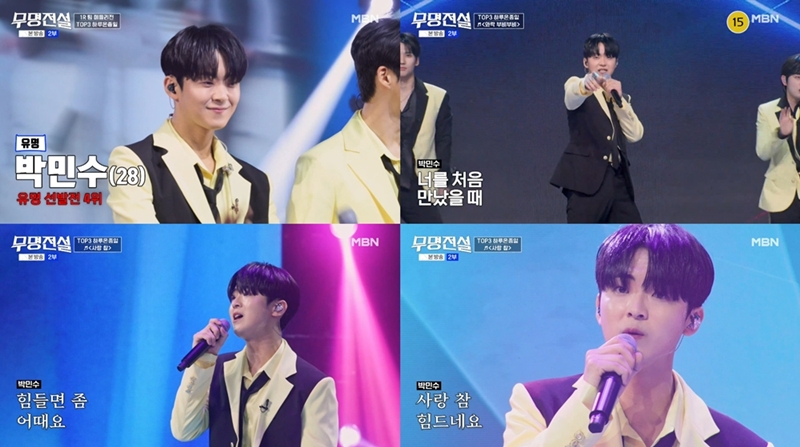 ¹Ú¹Î¼ö´Â Áö³ 15ÀÏ ¹æ¼ÛµÈ MBN ¡®¹«¸íÀü¼³¡¯ Æ®·Ô »ç³»µéÀÇ ¼¿ÀüÀï¿¡ Ãâ¿¬ÇØ ¡®±¹¹Î°¡¿ä ´ëÀü¡¯ ¹Ì¼Ç¿¡ ³ª¼¹´Ù. ÇØ´ç ¹Ì¼ÇÀº ÃÖ¹éÈ£, Àü¿µ·Ï, ÀåÀ±Á¤, ±èÁø·æÀÇ ´ëÇ¥°îÀ¸·Î ²Ù¸çÁ³´Ù.
